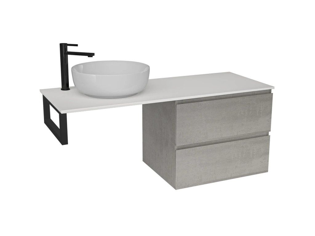 CERANO - Koupelnová skříňka Carole - betonově šedá + deska pod umyvadlo z lit. mramoru Elanys - 12 mm + konzole černá - 160x46x54,2 cm