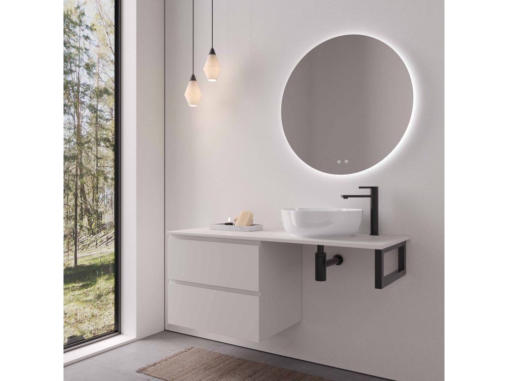CERANO - Koupelnová skříňka Carole - bílá matná + deska pod umyvadlo Navira Slim - 18 mm + konzole černá - 120x46x54,8 cm