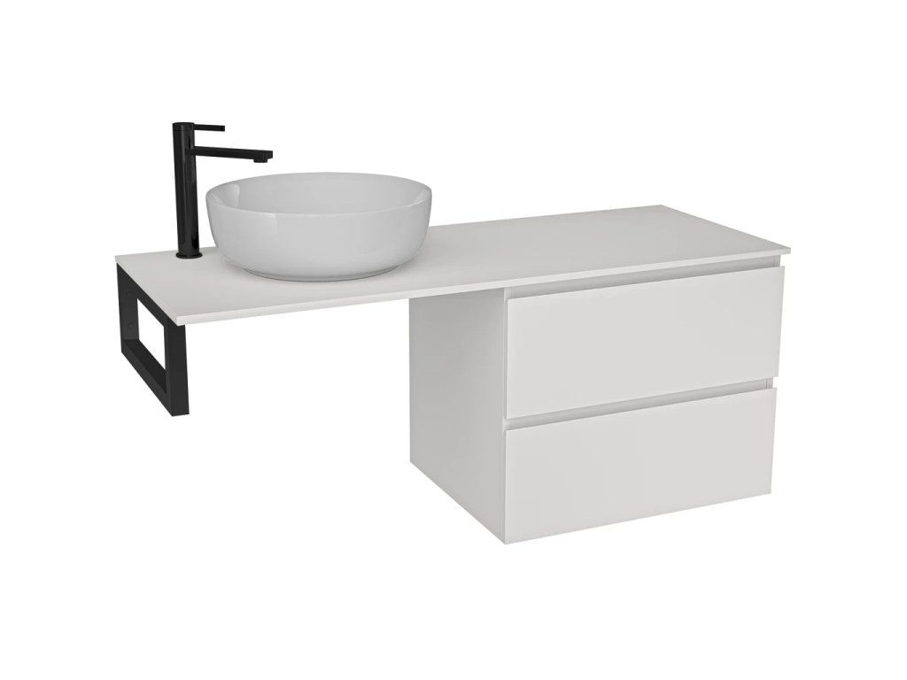 CERANO - Koupelnová skříňka Carole - bílá matná + deska pod umyvadlo z lit. mramoru Elanys - 12 mm + konzole černá - 140x46x54,2 cm