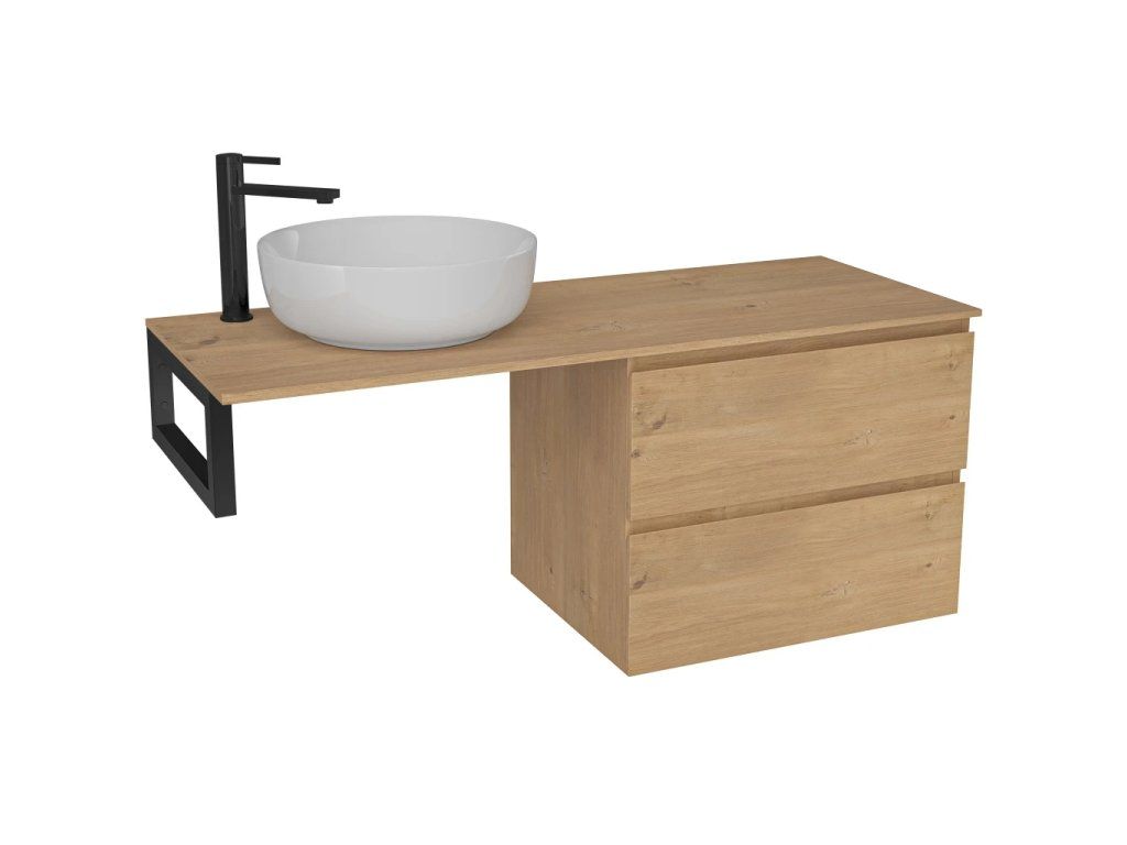 CERANO - Koupelnová skříňka Carole - dub medový + deska pod umyvadlo Navira Slim - 18 mm + konzole černá - 140x46x54,8 cm