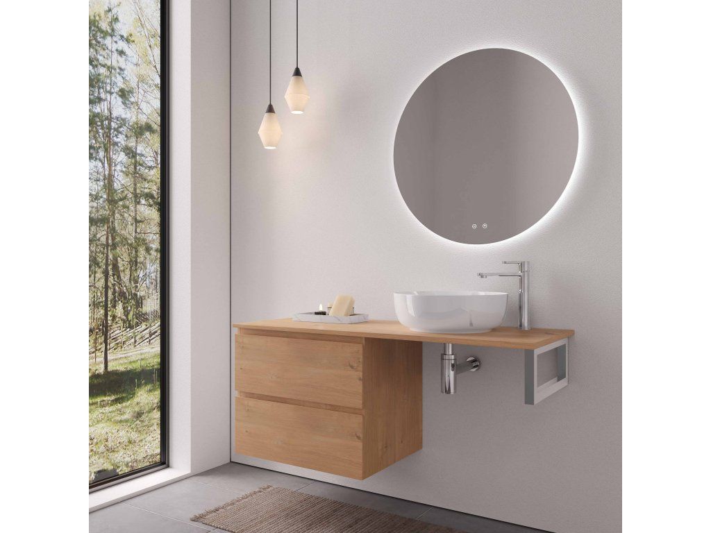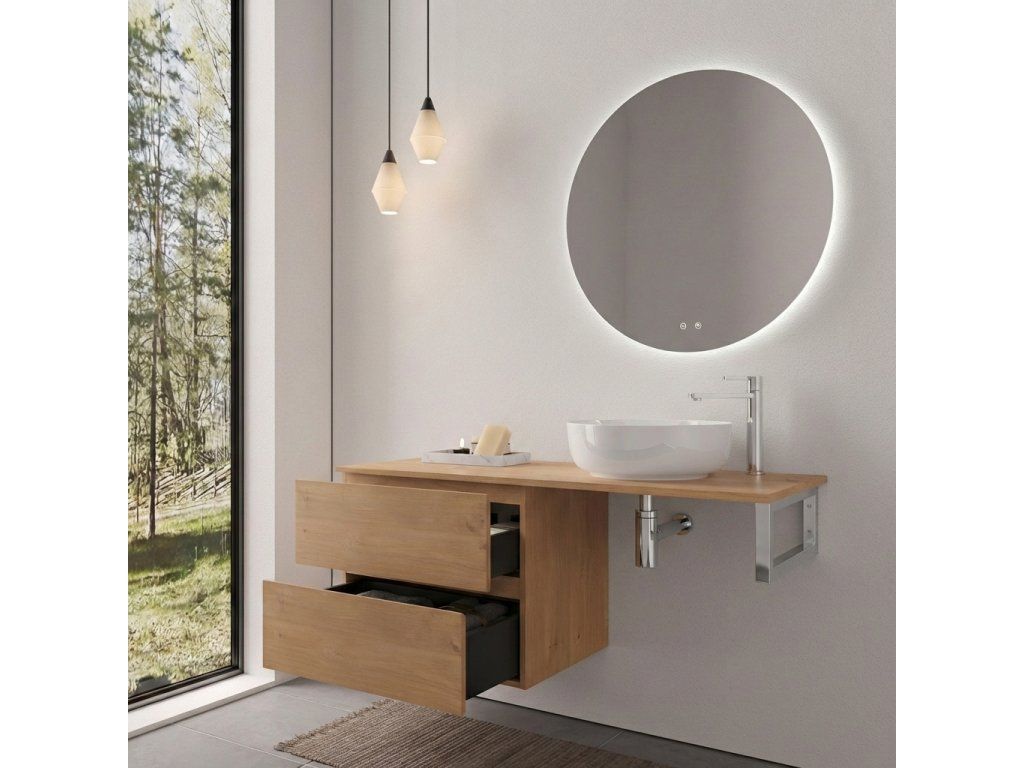 CERANO - Koupelnová skříňka Carole - dub medový + deska pod umyvadlo Navira Slim - 18 mm + konzole chrom - 160x46x54,8 cm