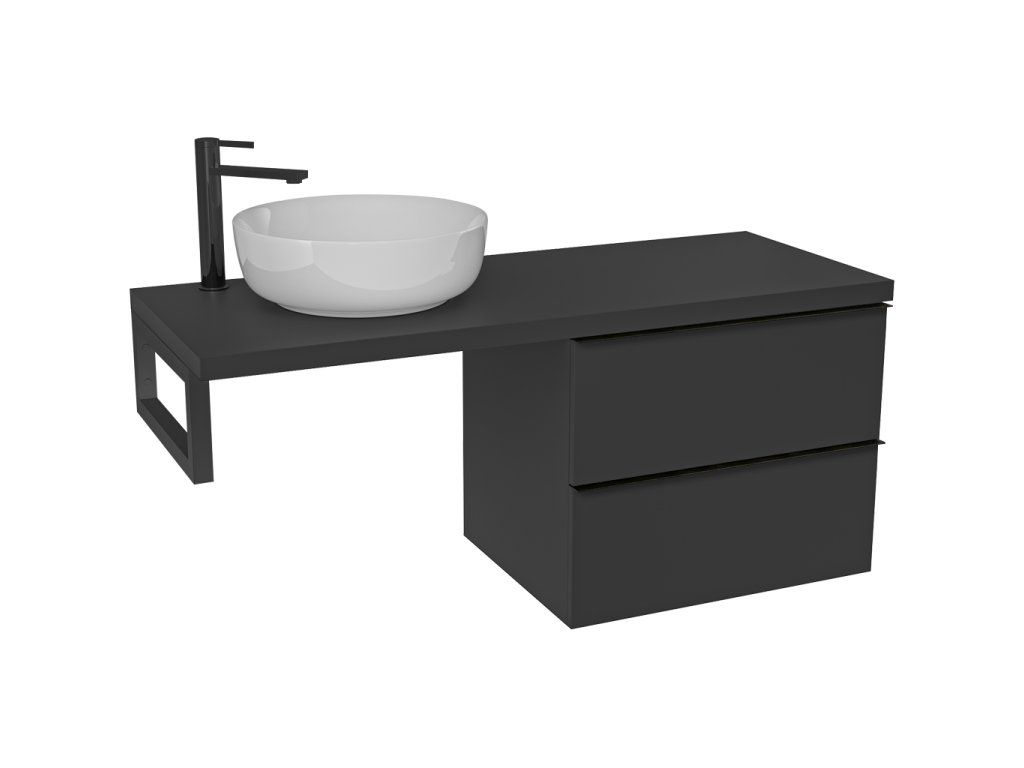 CERANO - Koupelnová skříňka Velora - černá matná, úchytka černá + deska pod umyvadlo Navira Pro - 36 mm + konzole černá - 120x56,6x46,5 cm