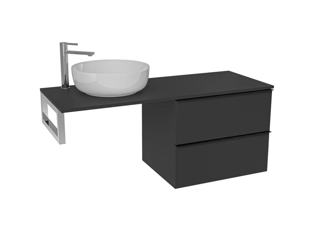 CERANO - Koupelnová skříňka Velora - černá matná, úchytka černá + deska pod umyvadlo Navira Slim - 18 mm + konzole chrom - 160x54,8x46,5 cm