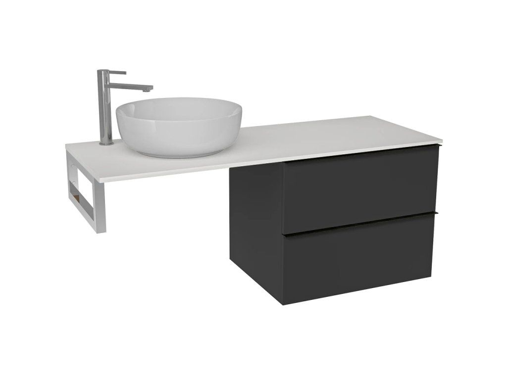 CERANO - Koupelnová skříňka Velora - černá matná, úchytka černá + deska pod umyvadlo z lit. mramoru Elanys - 12 mm + konzole chrom - 140x54,2x46,5 cm
