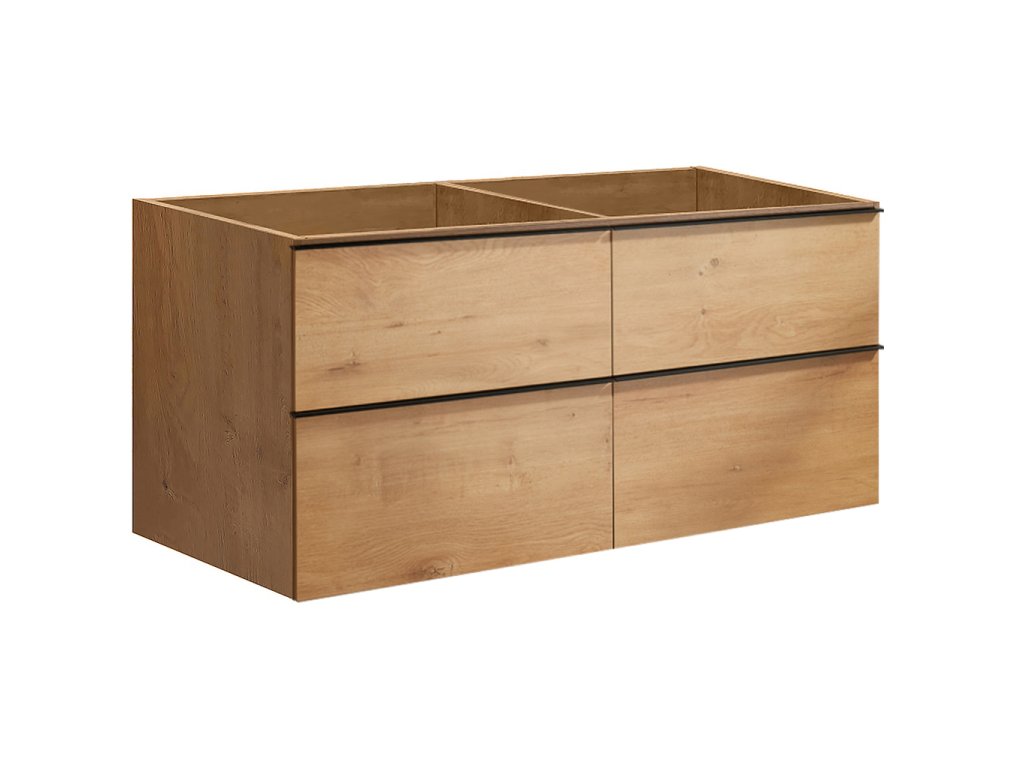 CERANO - Koupelnová skříňka pod umyvadlo s úchytkou Velora - dub medový, černá úchytka - 138x49,8x45,2 cm