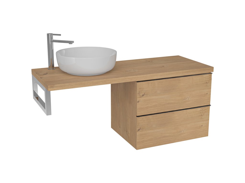 CERANO - Deska pod umyvadlo Navira Pro - 121x46,5x3,6 cm - skříňka Velora 59 cm - dub medový, černá úchytka - konzole chrom