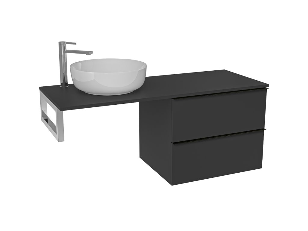 CERANO - Deska pod umyvadlo Navira Slim - 141x46,5x1,8 cm - skříňka Velora 69 cm - černá matná, černá úchytka - konzole chrom