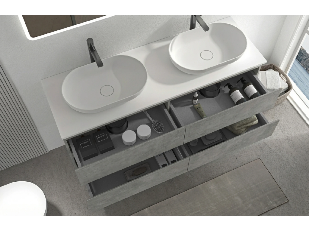 Ke skříňkám vždy nabízíme plně kompatibilní umyvadla nebo desky, u kterých máme jistotu správného usazení a funkčnosti. U umyvadel od jiných dodavatelů je použití možné, ale nemůžeme zaručit plnou kompatibilitu a bezproblémovou montáž.