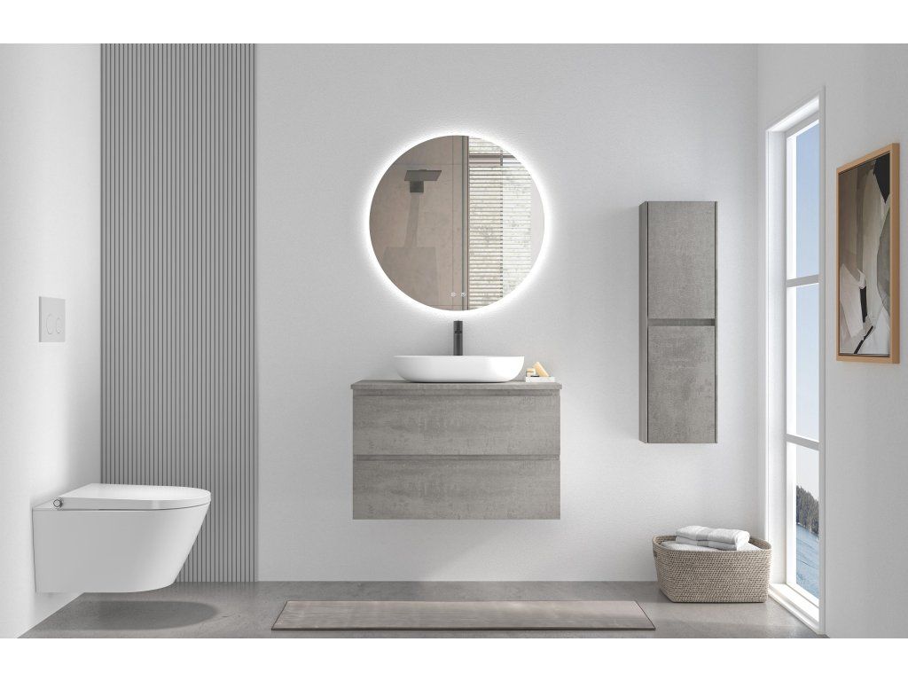CERANO - Koupelnová skříňka Carole + deska pod umyvadlo Navira Slim - 18 mm - betonově šedá - 80x49,8x46 cm