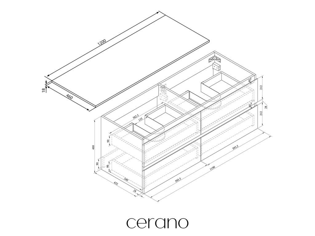 V rámci této série nabízíme širokou škálu rozměrů, abychom uspokojili různé potřeby našich zákazníků. Všechny koupelnové skříňky značky Cerano jsou navrženy tak, aby byly plně kompatibilní s deskami a umyvadly Cerano ve stejných rozměrech, což zajišťuje bezproblémovou instalaci a dokonalé sladění.