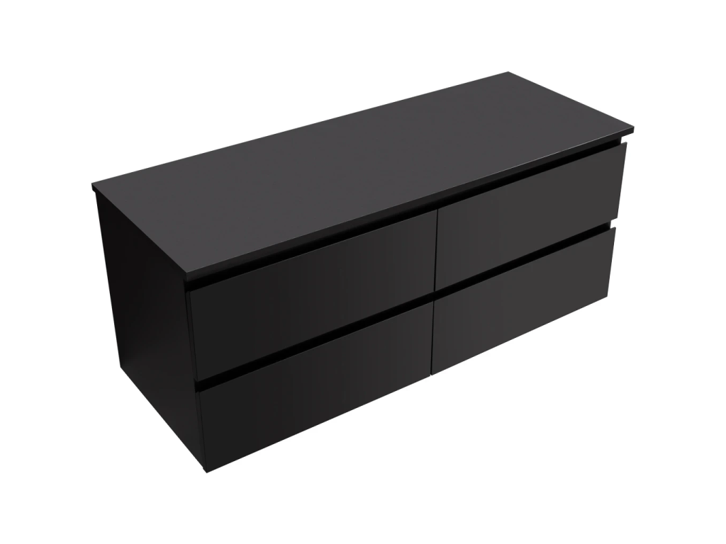 CERANO - Koupelnová skříňka Carole + deska pod umyvadlo Navira Slim - 18 mm - černá matná - 140x49,8x46 cm