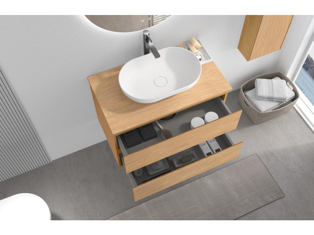 CERANO - Koupelnová skříňka Carole + deska pod umyvadlo Navira Slim - 18 mm - dub medový - 60x49,8x46 cm