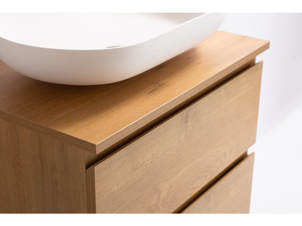 CERANO - Koupelnová skříňka Carole + deska pod umyvadlo Navira Slim - 18 mm - dub medový - 70x49,8x46 cm