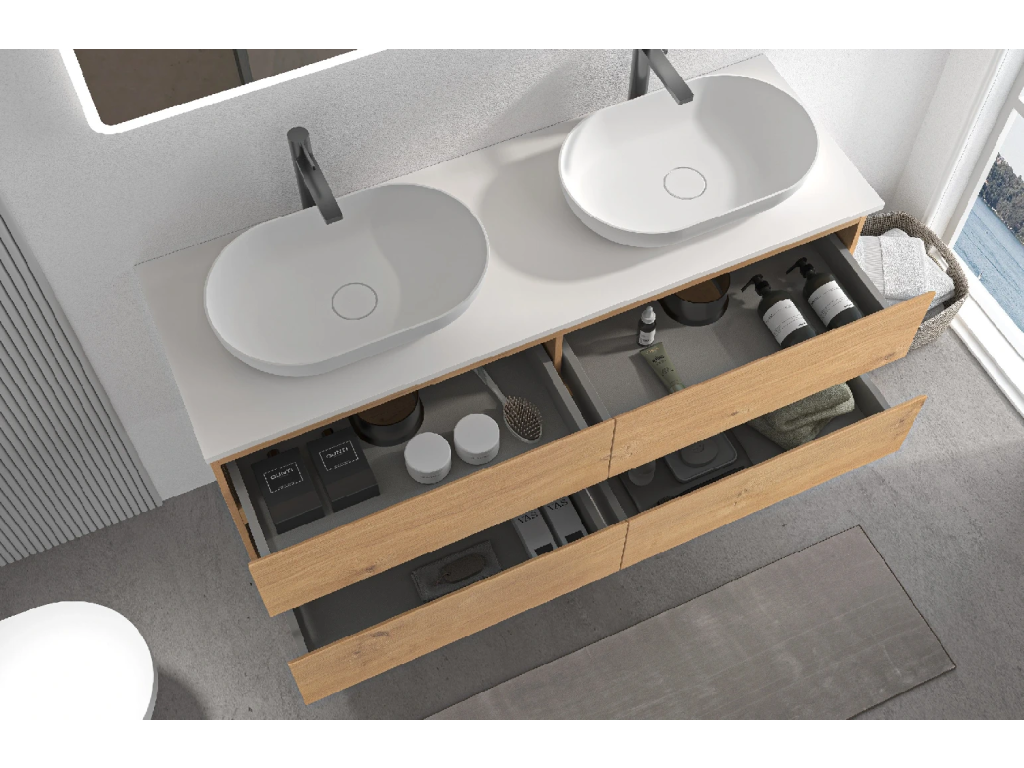 Ke skříňkám vždy nabízíme plně kompatibilní umyvadla nebo desky, u kterých máme jistotu správného usazení a funkčnosti. U umyvadel od jiných dodavatelů je použití možné, ale nemůžeme zaručit plnou kompatibilitu a bezproblémovou montáž.