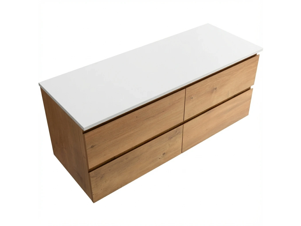 CERANO - Koupelnová skříňka Carole - dub medový + deska pod umyvadlo z lit. mramoru Elanys - 12 mm - bílá matná - 160x49,2x46 cm