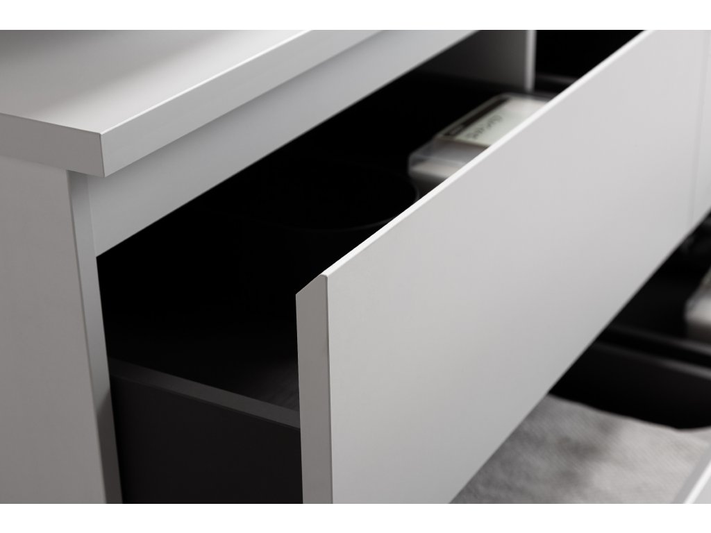 Funkce tichého dovírání (Quiet Close) zajišťuje, že se zásuvky zavírají hladce a bez hluku. Tento mechanismus minimalizuje opotřebení nábytku a přispívá k dlouhodobé životnosti skříňky. Umožňuje tiché a pohodlné používání, což oceníte zejména v ranních a nočních hodinách.
