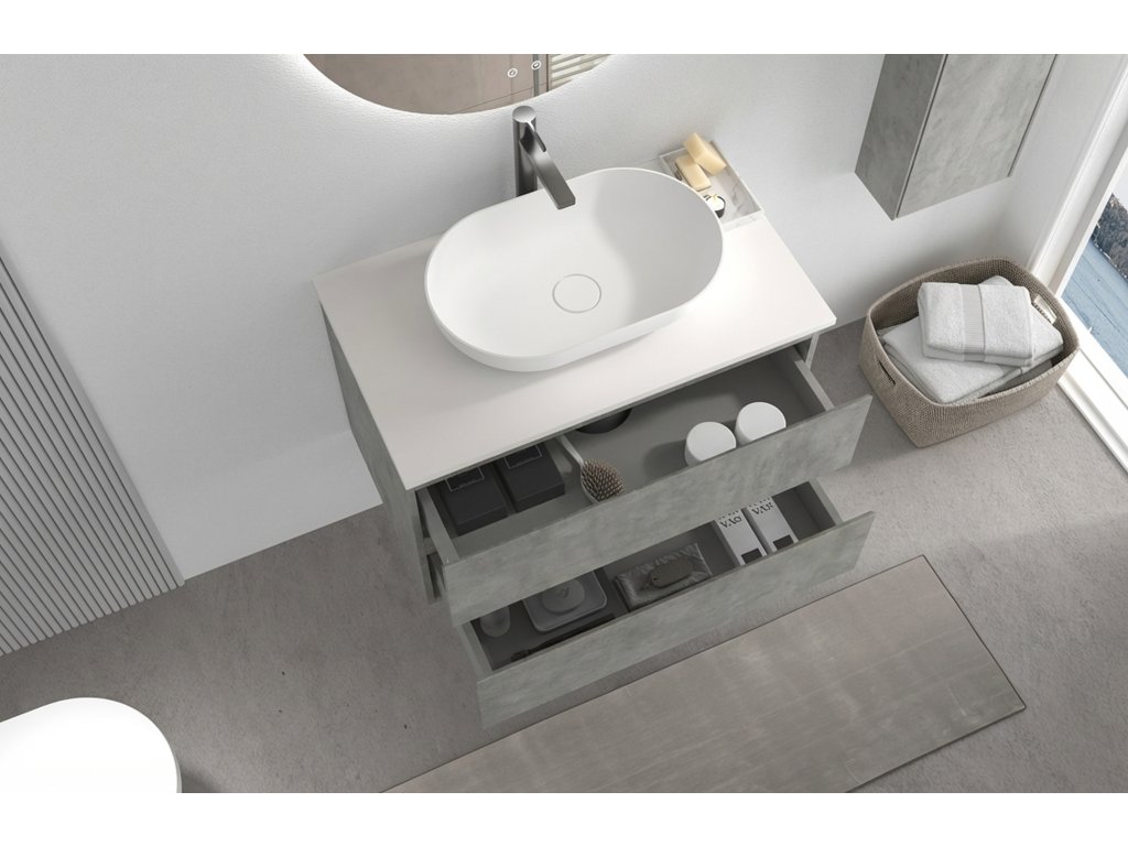 CERANO - Koupelnová skříňka Carole s deskou pod umyvadlo z litého mramoru Elanys - 12 mm - betonově šedá - 80x49,8x46,5 cm