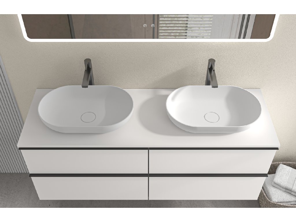 CERANO - Koupelnová skříňka pod umyvadlo s úchytkou/deskou pod umyvadlo Velora - 18 mm - bílá matná, černá úchytka - 138x53x45,2 cm
