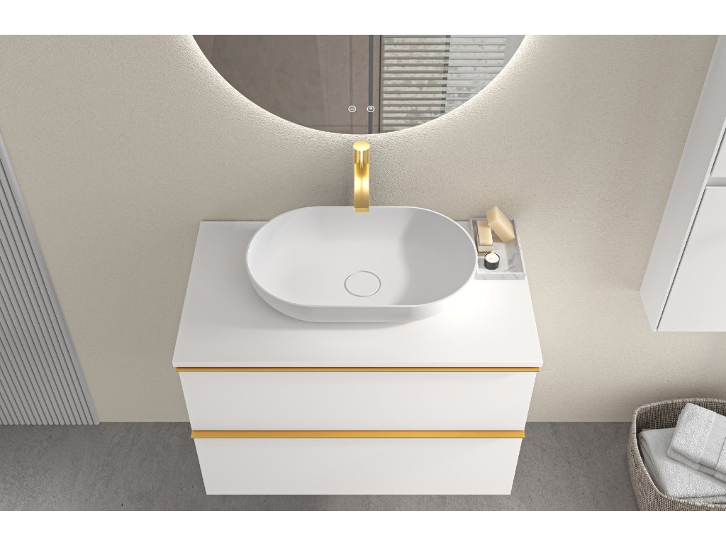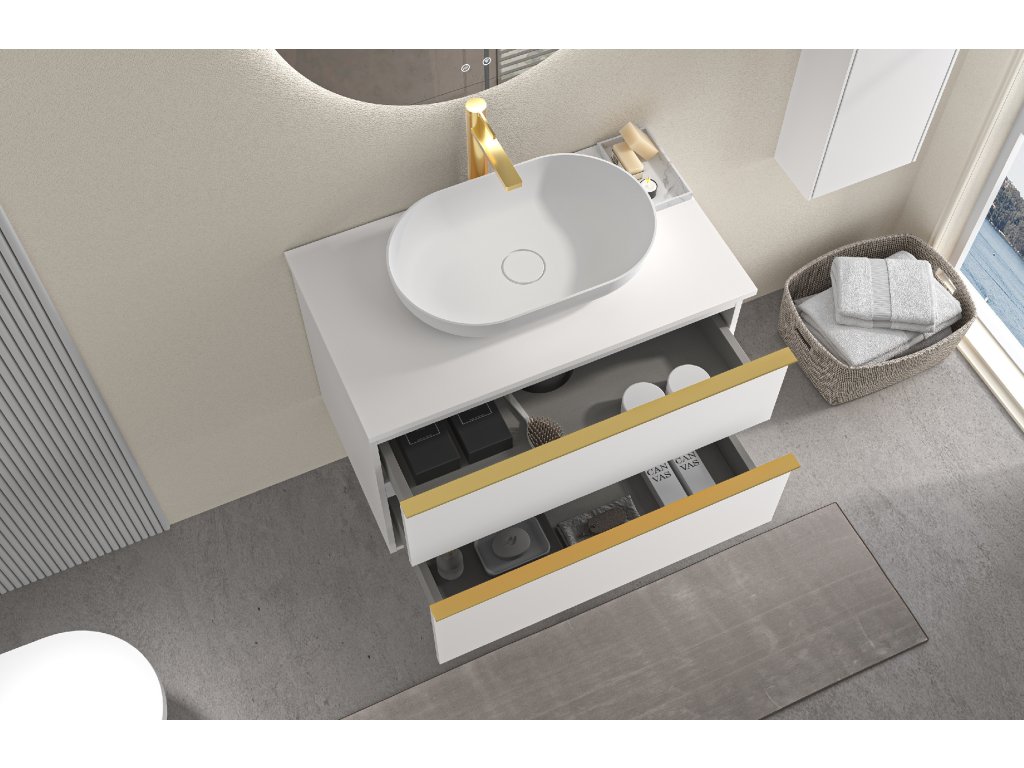 CERANO - Koupelnová skříňka pod umyvadlo s úchytkou/deskou pod umyvadlo Velora - 18 mm - bílá matná, zlatá úchytka - 69x53x46 cm