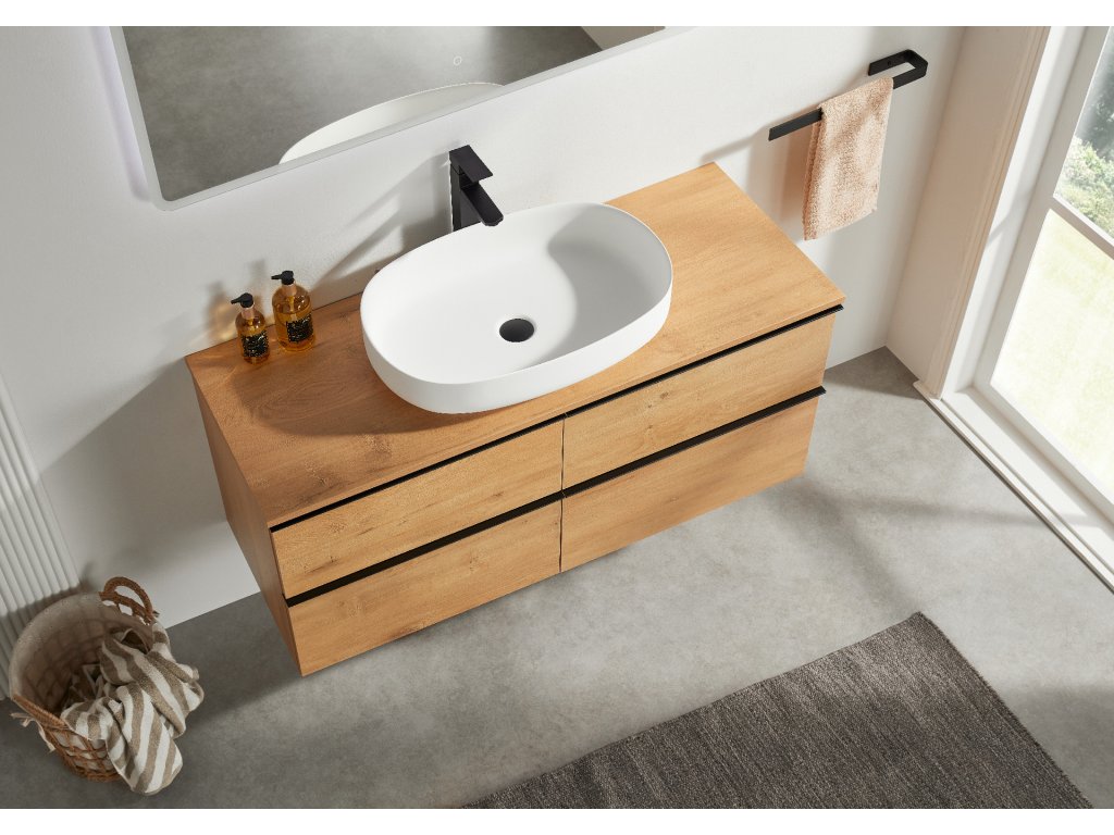 CERANO - Koupelnová skříňka pod umyvadlo s úchytkou/deskou pod umyvadlo Velora - 18 mm - dub medový, černá úchytka - 119x53x45,2 cm