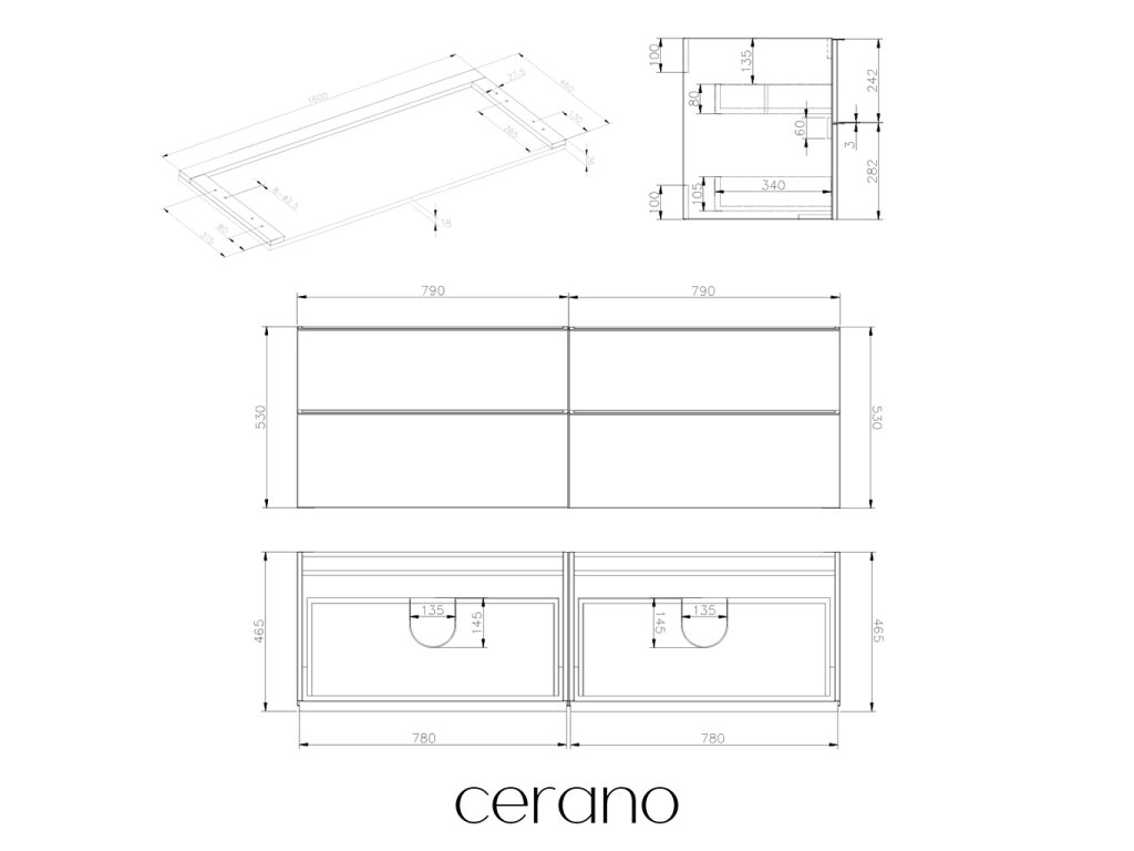 CERANO - Koupelnová skříňka pod umyvadlo s úchytkou/deskou pod umyvadlo Velora - 36 mm - bílá matná, černá úchytka - 158x49,8x45,2 cm