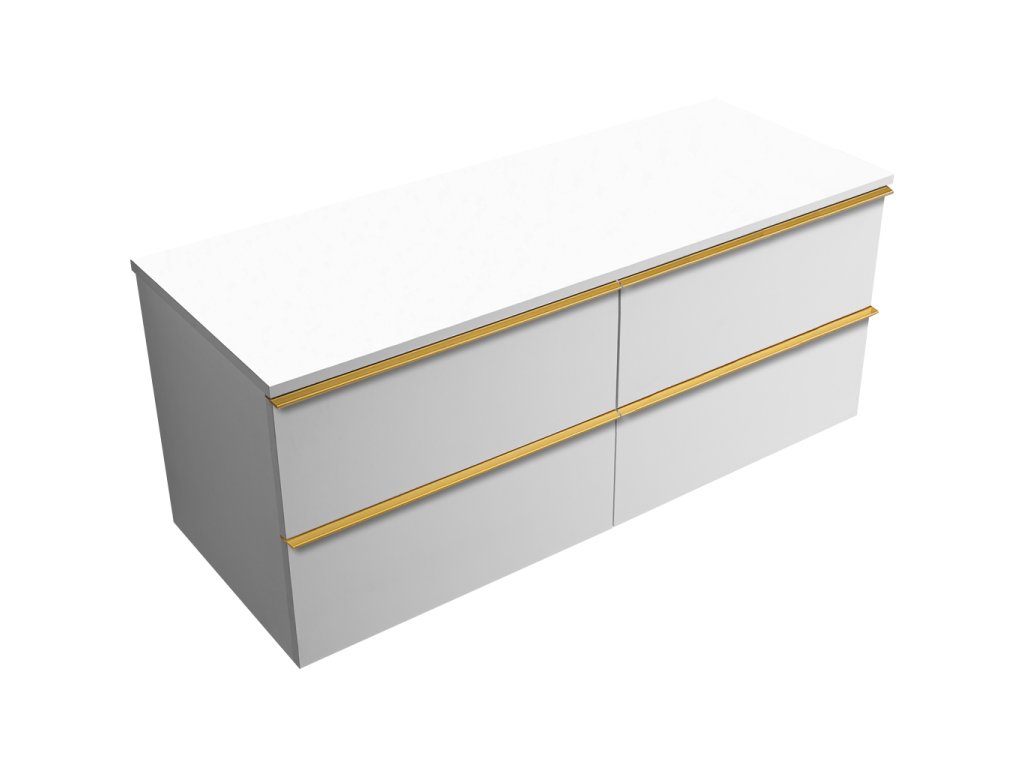 CERANO - Koupelnová skříňka pod umyvadlo Velora s úchytkou/deskou z litého mramoru Elanys - 12 mm - bílá matná, zlatá úchytka - 119x53x45,2 cm