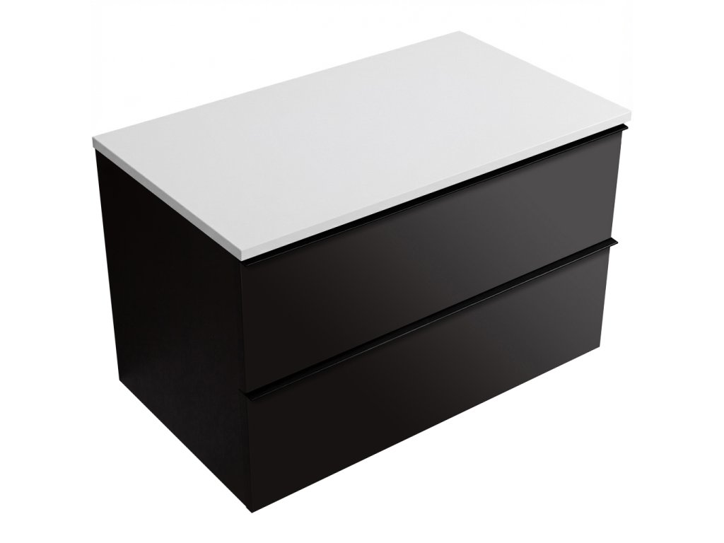 CERANO - Koupelnová skříňka pod umyvadlo Velora s úchytkou/deskou z litého mramoru Elanys - 12 mm - černá matná, černá úchytka - 99x53x46 cm