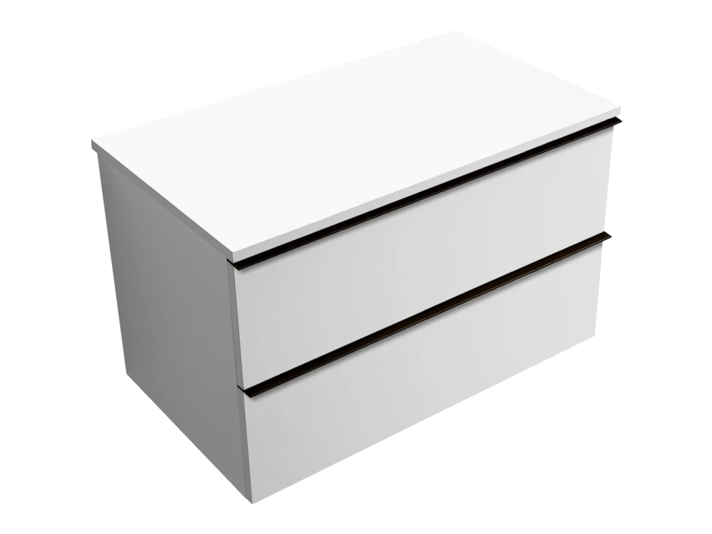 CERANO - Koupelnová skříňka Velora - bílá matná, úchytka černá + deska pod umyvadlo Navira Slim - 18 mm - 100x54,8x46,5 cm