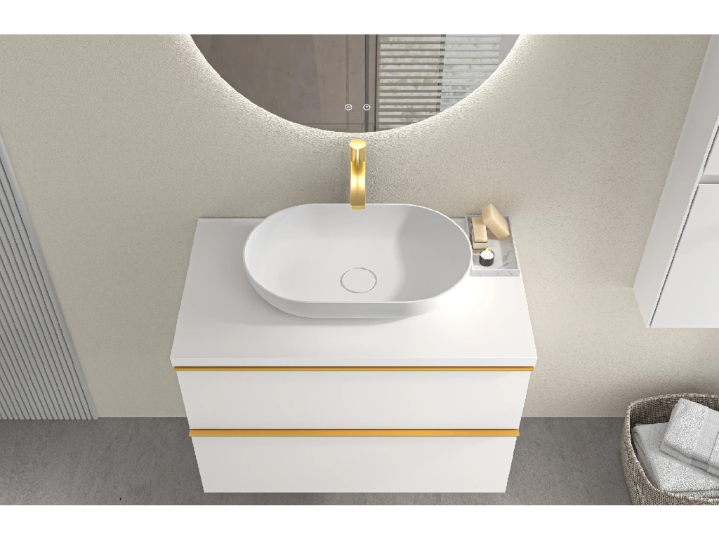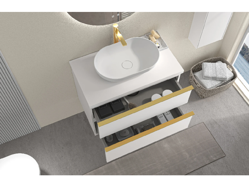 CERANO - Koupelnová skříňka Velora - bílá matná, úchytka zlatá + deska pod umyvadlo Navira Pro - 36 mm - 80x56,6x46,5 cm