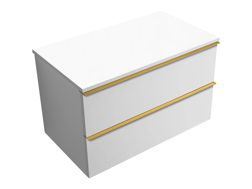 CERANO - Koupelnová skříňka Velora - bílá matná, úchytka zlatá + deska z lit. mramoru Elanys - 12 mm - bílá matná - 100x54,2x46,5 cm