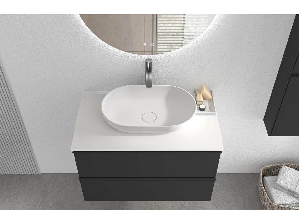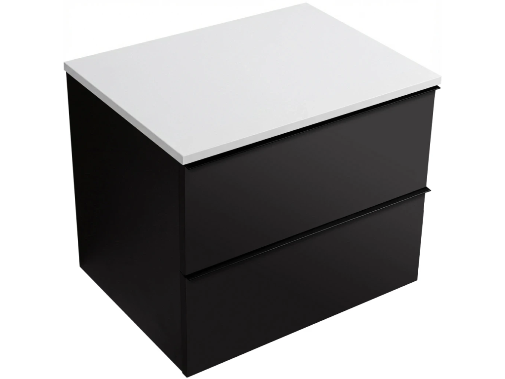 CERANO - Koupelnová skříňka Velora - černá matná, úchytka černá + deska z lit. mramoru Elanys - 12 mm - bílá matná - 60x54,2x46,5 cm