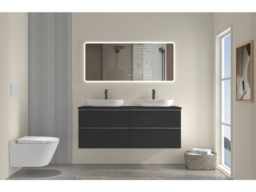 CERANO - Koupelnová skříňka Velora - černá matná, úchytka chromová + deska pod umyvadlo Navira Pro - 36 mm - 120x56,6x46,5 cm