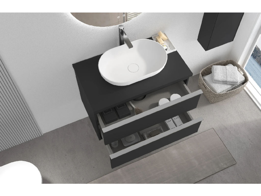 CERANO - Koupelnová skříňka Velora - černá matná, úchytka chromová + deska pod umyvadlo Navira Pro - 36 mm - 80x56,6x46,5 cm