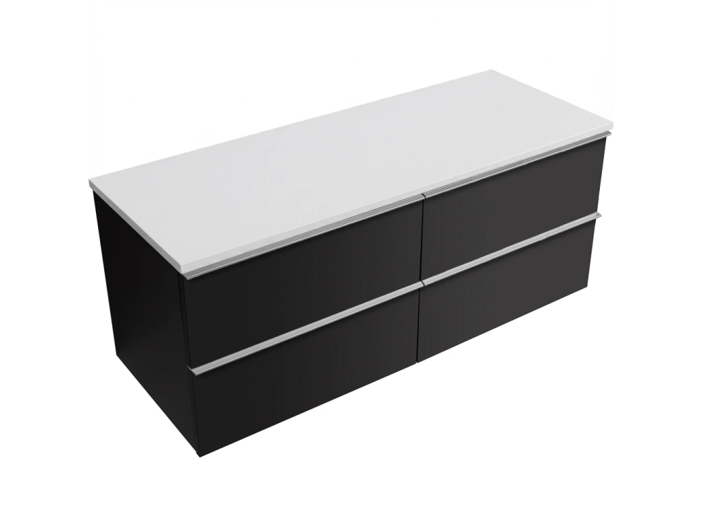 CERANO - Koupelnová skříňka Velora - černá matná, úchytka chromová + deska z lit. mramoru Elanys - 12 mm - bílá matná - 160x54,2x46,5 cm