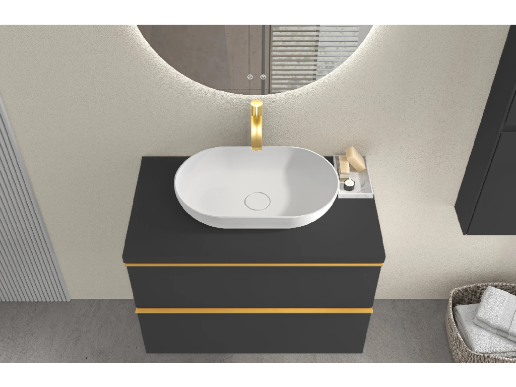 CERANO - Koupelnová skříňka Velora - černá matná, úchytka zlatá + deska pod umyvadlo Navira Pro - 36 mm - 80x56,6x46,5 cm