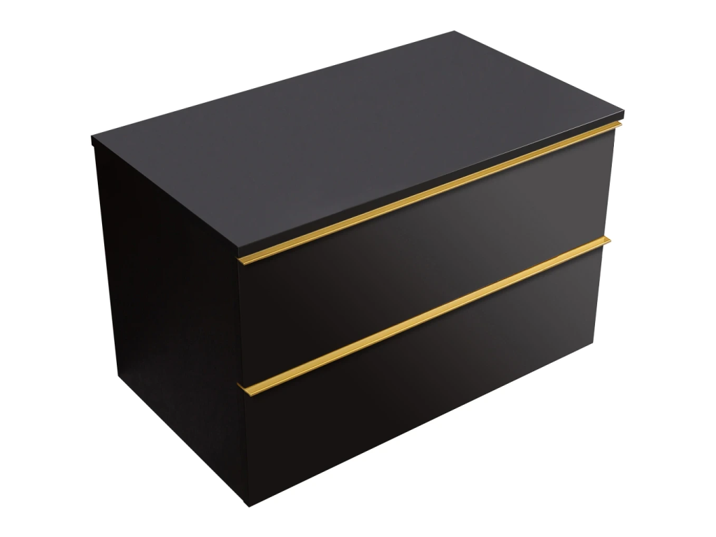 CERANO - Koupelnová skříňka Velora - černá matná, úchytka zlatá + deska pod umyvadlo Navira Slim - 18 mm - 100x54,8x46,5 cm