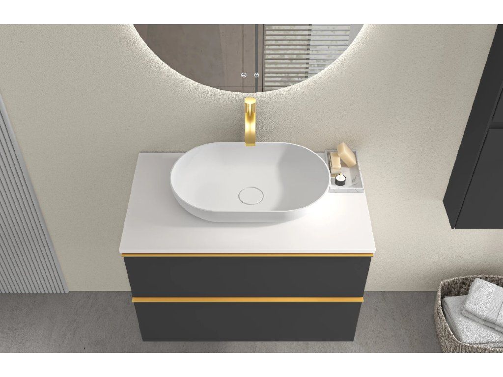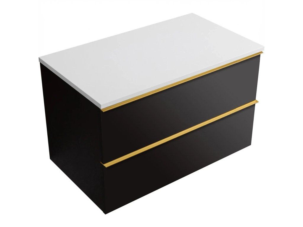 CERANO - Koupelnová skříňka Velora - černá matná, úchytka zlatá + deska z lit. mramoru Elanys - 12 mm - bílá matná - 100x54,2x46,5 cm