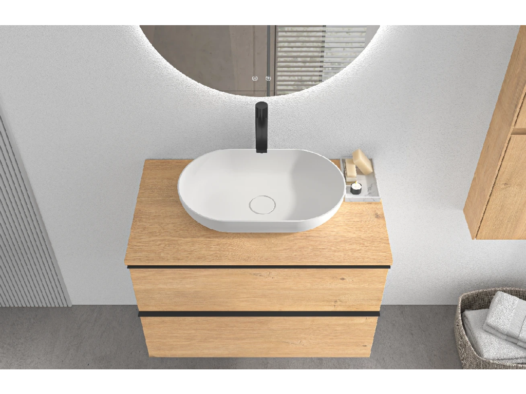 CERANO - Koupelnová skříňka Velora - dub medový, úchytka černá + deska pod umyvadlo Navira Slim - 18 mm - 80x54,8x46,5 cm
