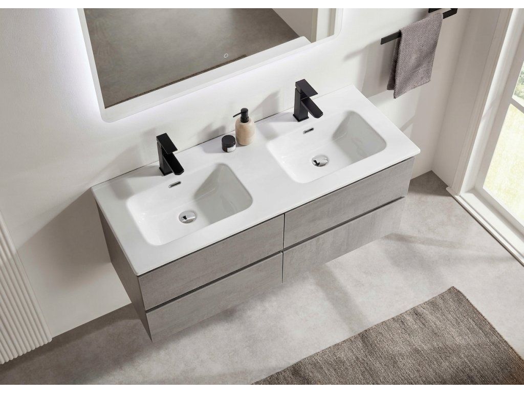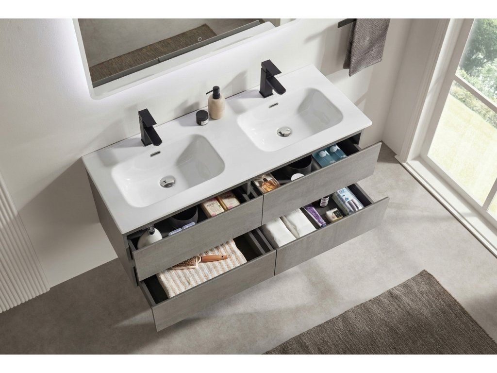 CERANO - Koupelnová skříňka Carole - betonově šedá + keramické dvojumyvadlo Novo - bílá lesklá - 121x49,5x46,5 cm