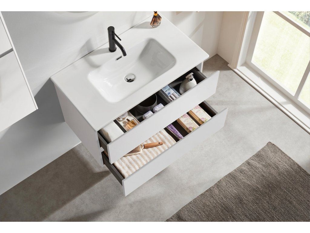 CERANO - Koupelnová skříňka Carole - bílá matná + keramické umyvadlo Novo - bílá lesklá - 81x49,5x46,5 cm