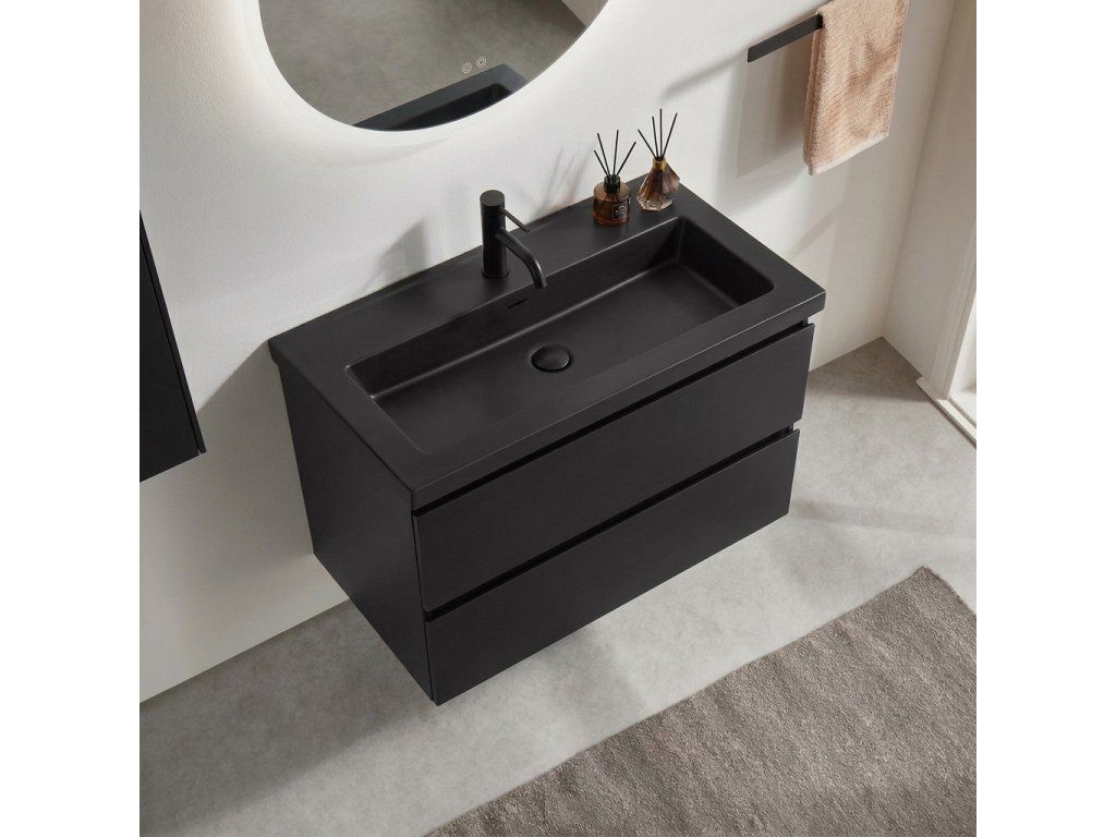 CERANO - Koupelnová skříňka Carole - černá matná + umyvadlo z lit. mramoru Ovo - černá matná - 80,5x53x46,3 cm