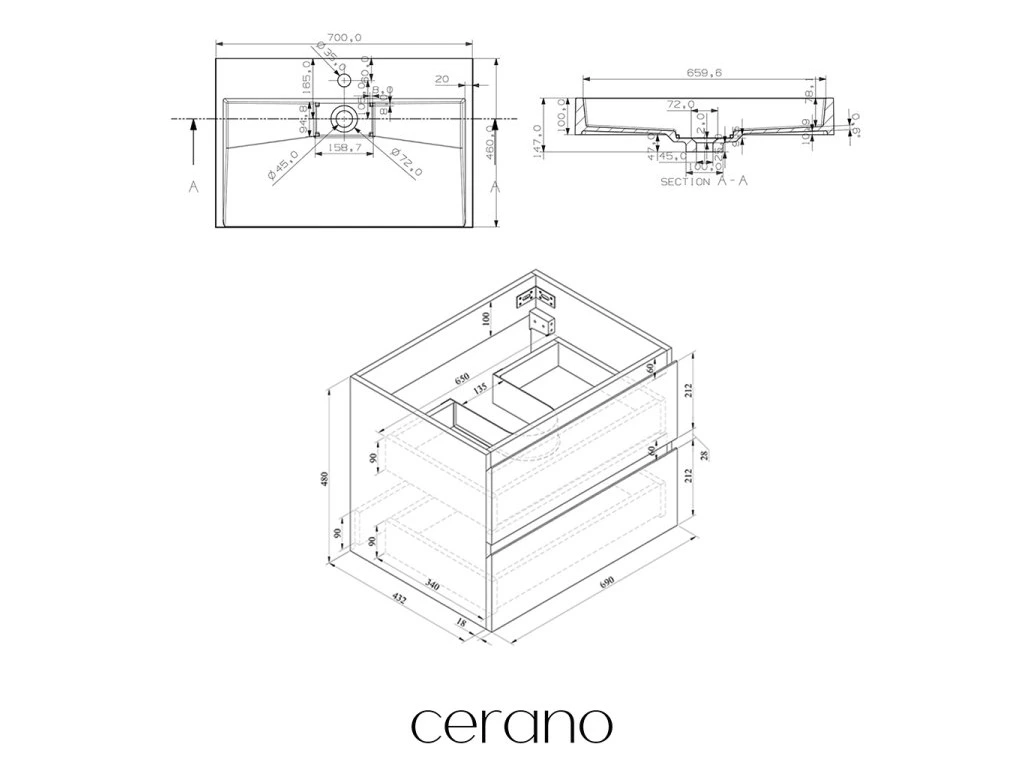 V rámci této série nabízíme širokou škálu rozměrů, abychom uspokojili různé potřeby našich zákazníků. Všechny koupelnové skříňky značky Cerano jsou navrženy tak, aby byly plně kompatibilní s deskami a umyvadly Cerano ve stejných rozměrech, což zajišťuje bezproblémovou instalaci a dokonalé sladění.