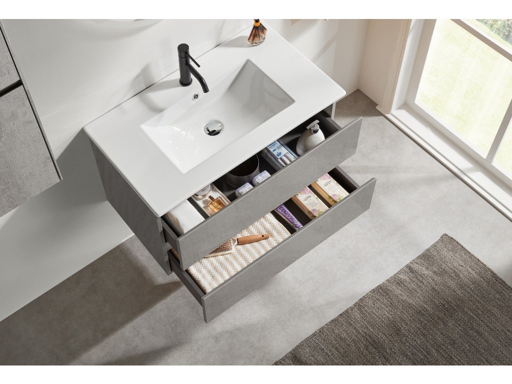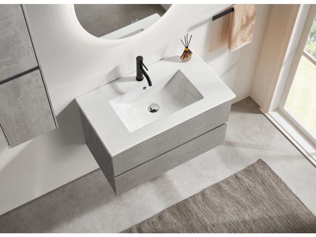 CERANO - Koupelnová skříňka Carole + keramické umyvadlo Todo - betonově šedá - 71x49,5x46,5 cm