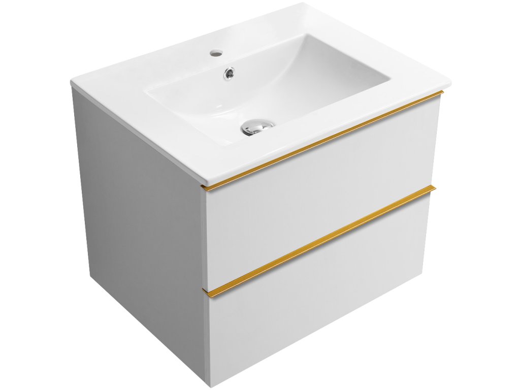 CERANO - Koupelnová skříňka pod umyvadlo s úchytkou Velora + keramické umyvadlo Todo - bílá matná, zlatá úchytka - 59x53x46 cm