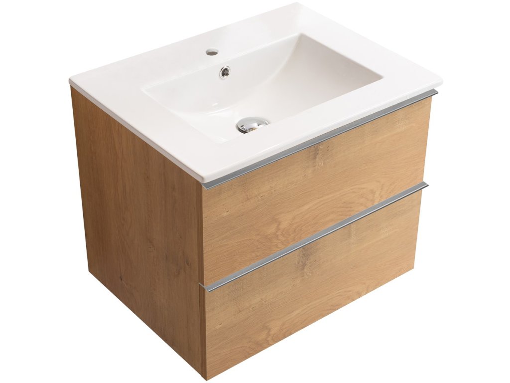 CERANO - Koupelnová skříňka pod umyvadlo s úchytkou Velora + keramické umyvadlo Todo - dub medový, chromová úchytka - 59x49,8x46 cm