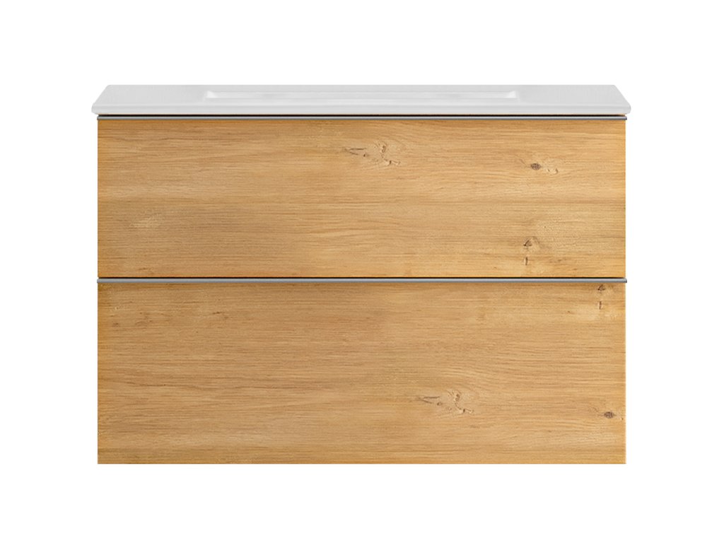 Koupelnové skříňky jsou vyrobeny z MDF lamina (středně hustá dřevovláknitá deska) s nalisovanou melaminovou fólií, která je odolná vůči vlhkosti, poškrábání, UV záření a běžným čisticím prostředkům. Povrch je hladký, tvrdý, homogenní a snadno se čistí. MDF desky se nekroutí jako masivní dřevo. Pokud dojde k mechanickému narušení laminace, samotné MDF jádro může navlhnout.