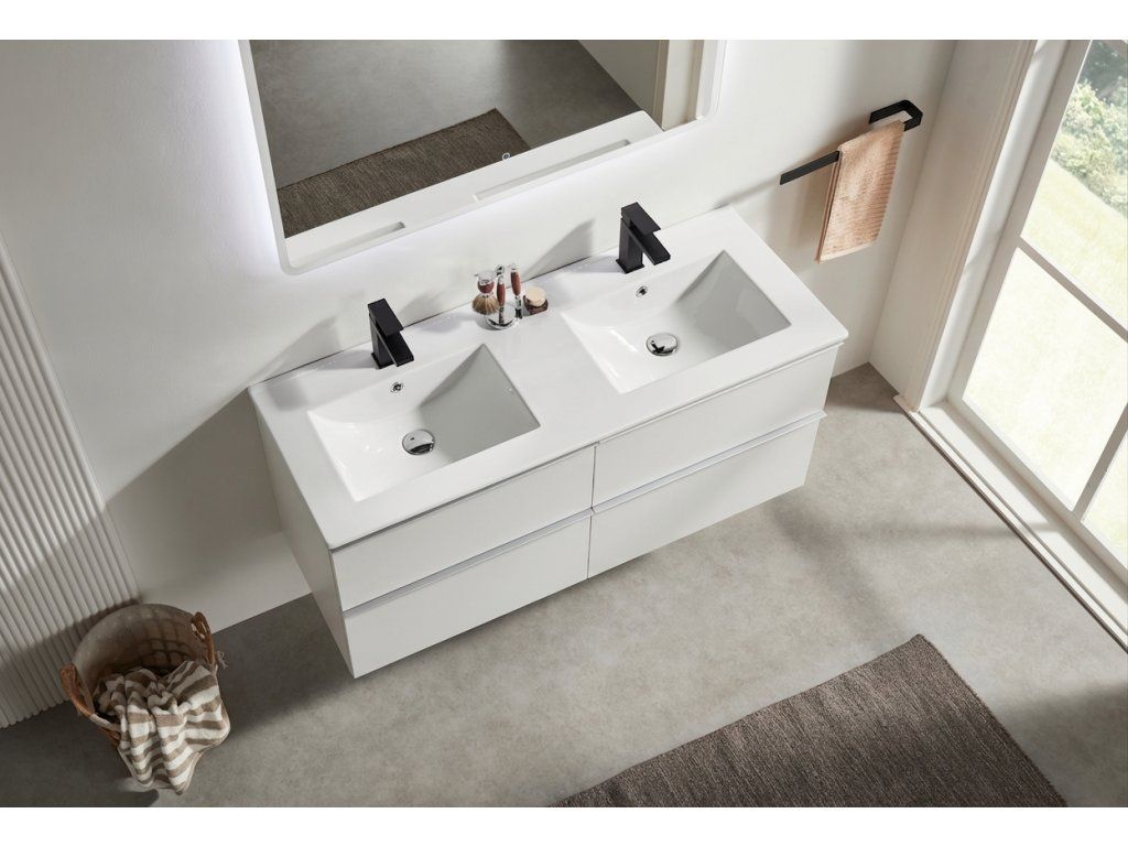 CERANO - Koupelnová skříňka Velora - bílá matná, úchytka chrom + keramické umyvadlo Todo - 121x55x46,5 cm