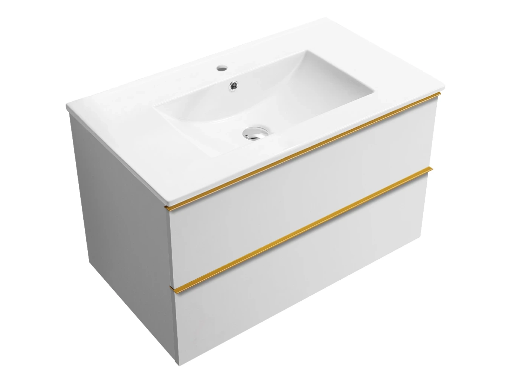 CERANO - Koupelnová skříňka Velora - bílá matná, úchytka zlatá + keramické umyvadlo Todo - 81x55x46,5 cm