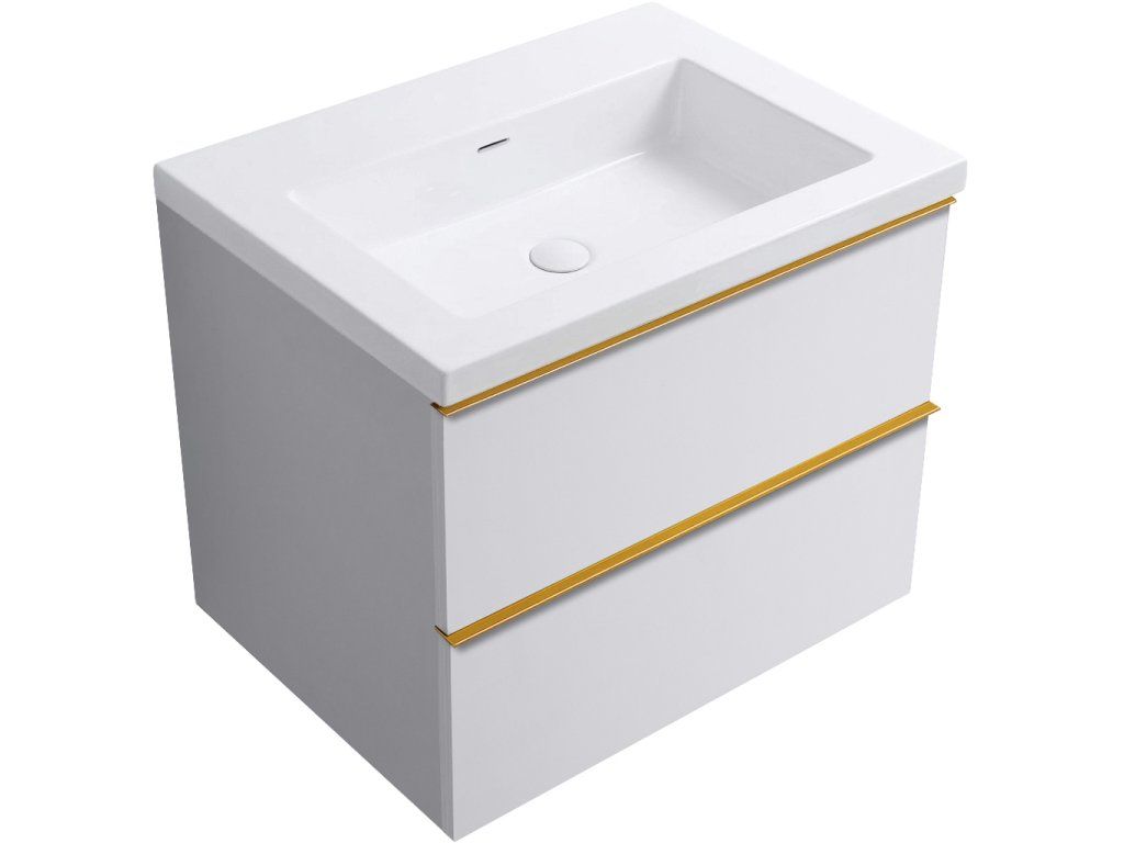 CERANO - Koupelnová skříňka Velora - bílá matná, úchytka zlatá + umyvadlo z lit. mramoru Ovo - bílá lesklá - 70,5x58x46,5 cm