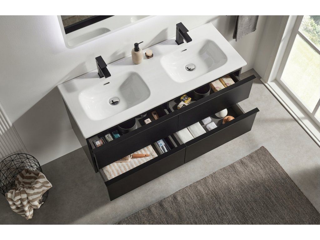 CERANO - Koupelnová skříňka Velora - černá matná, úchytka černá + keramické umyvadlo Novo - bílá lesklá - 121x54,5x46,5 cm